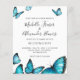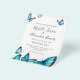 Trendiga blå akvarellfjärilar. Bröllopsinbjudan. Elegant val för sommarbröllop. Del av en bröllopssamling.