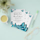 Trendiga blå akvarellfjärilar. Bröllopsinvi Flygblad