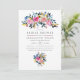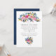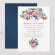 Navy och vita rosen- och peoniblommiga bröllopsinbjudningar med accenter av guld, rosafärgad och plommon.