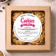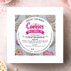 Moderna Cookies Cottage lagetikett i en feminin design i rosa och vitt med handskrivna teckensnitt, utrymme för ditt företagsnamn, adress, kaksmak, ingredienser och allergener. Du kan redigera all text och färger för att matcha din estetik och dina produkter.