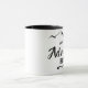 Äventyr börjar Trendiget Coffee Mugg. Vårt handgjorda berg med modernt typsnitt och vår handgjorda pil omger det positiva citatet "och därför börjar äventyr". Du kan anpassa bakgrunden till färg.