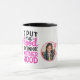 Lägg till tre foton (kvadratiska bilder är perfekt eftersom de kommer att storleksändras automatiskt så att de passar in i ramar) för att anpassa den här moderna handelsgåvan mugg för MAMMA. Perfekt för Mors dag, Mamma födelsedag, Mor jul eller som Tack eller Hämta snart. Fotografierna kan bestå av barn, mamma, familjefotor efter behov. Det rosa och svart är färg. Uttrycket är "Jag sätter Huvan på Moderskap".