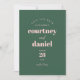 Modern Grönt Trendig Photo Save the Date har modern typiparning i fet, modernt färg tillsammans med ett fullt på baksidan.