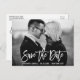 Trendiget Modern penselskript Spara Förlovningen Datumfoto-vykort - svartvitt