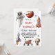 Den här inbjudan av typen "one-of-a-as" anger tonen för en utomjordisk babydusch som kommer att få alla dina gäster att prata. Oavsett om du firar din lilla astronaut, utlänning eller rymdutforskare, så kommer dessa inbjudningar säkert att ge ett tydligt intryck. Förbered för hiss av till en oförglömlig händelse!.Trendig Rocket Frakt Space Galaxy Alien Baby Shower-inbjudan för barn