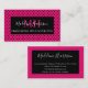 Shock rosa och svart polka-affärskort. Kortet kan anpassas med ett för- och efternamn, initialer i versaler och professionell/yrkestitel, antingen i övre fodral eller lägre beroende på vad du föredrar. På baksidan av kortet finns det utrymme för ett förnamn och ett efternamn igen och dina kontaktuppgifter. Texten fält är endast till för vägledning, så om du föredrar att byta ut din egen information, t.ex. social-mediahandtag i en av texterna fält, så gå vidare med den. Anpassa den för att göra den helt till din egen.
