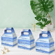 Bröllopunktslådorna har en förbluffande vattenfärgsblå penseldragskonstruktion. Övertoningseffekten skiftar från djup marin blå till ljusblå toner, vilket ger en känsla av elegans och djup. I designen ingår ord "Tack!" i elegant, flytande skript, tillsammans med parets namn och datumet i bröllop, som skapar en personlig touch. Denna moderna och konstnärliga utformning gör att dessa tjänster blir en perfekt för en snyggt och ett minnesvärt bröllop firande.