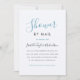 Trendig-typografi och en blå vattenfärg rand en vit tonad blå babydusch för framsidan genom e-postinbjudan. Denna moderna inbjudan är ett skickligt sätt för vänner och familj i inbjudan att duscha mor för att vara med gåvor och kärleksfulla tankar på långt håll. Perfekt för ett pojke.
