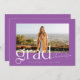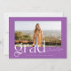 Det här moderna och trendig studenten-meddelandet har en lila- och vit färg-palett och ett stort foto av student. En fet och snyggt "Grad" står på framsidan. Kortets baksida har en enkel typ som gör att du kan få mer information om student och deras framtidsplaner. Du kan också ändra den till en studentfest-inbjudan. Du hittar andra versioner av den här designen i min Zazzle-butik.