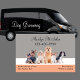 Mall för visitkort för hund och husdjurssalon i en contemporary som är utformad med en bild av hundar i bakgrunden och en layout som redan är organiserad så att du bara kan ersätta vår text med din. Designad för antingen en mobil trimningstjänst eller butikssalong.