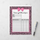 Gör kundens beställning enkel med dessa söta och trendig rosa och svart leopardblanketter för utskrift av boutique-beställningar som är förnimbara med shock rosa giftiga band som är bundna till en söt bugg. Anpassa genom att lägga till namn i butiken eller onlinen. De här formulärmallarna för snyggt har ställe för produktbeskrivning, kvantitet och försäljningspris. Platt utskriven bild, inte egentligt menyfliksområde.