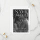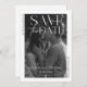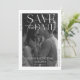 Modern bröllop spara datum-vykort med trendig ovarlay typografi. Mallfunktion ett foto av lodrät. Foto och text kan enkelt vara personlig för en unik och snygg design för din speciella dag.