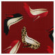 Chic rött tyg, stil av ditt primat som göras i rikt rött, med diagram av ett jaguartryck, en svart och ett rött stiletthögklackarmönster. Roligt för någon sömnad eller att tillverka projekterar.