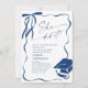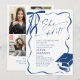 Trendy Blue Bow Ribbon 4 PHOTO Graduation Party Inbjudningar
