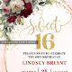 Trendy Boho Burgundy Gold Floral Sweet Sixteen Inbjudningar
