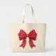 Trendy Coquette Red Ribbon Bow with White Hearts Jumbo Tygkasse