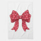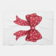Trendy Coquette Red Ribbon Bow with White Hearts Kökshandduk