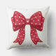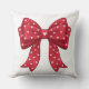 Trendy Coquette Red Ribbon Bow with White Hearts Kudde
