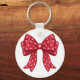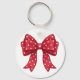 Trendy Coquette Red Ribbon Bow with White Hearts Nyckelring
