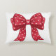 Trendy Coquette Red Ribbon Bow with White Hearts Prydnadskudde