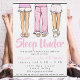 Invite friends to a cozy and stylish Sleep Under with this trendy pajama party invitation, perfect for tweens who love fun without the overnight stay. Featuring a chic illustration of three fashionable girls from the waist down in ruffle pajama bottoms, fluffy-trim PJ pants, and cozy slippers or furry boots, this design sets the tone for a night full of giggles and memories.