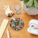 This trendy keychain sports a mix of modern and retro with colorful jazzy swirls and dots. Colors include a trendy vintage color palette of gold, light orange, deep orange, dark teal, blue, navy, black, and cream. Your monogram initial appears in a swirly typeface font in light orange against a color block of deep teal blue. Coordinating playing cards are available.