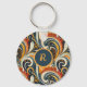 Trendy Hip Retro Orange Deep Teal Swirls Monogram Nyckelring