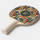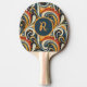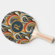 This trendy ping pong paddle sports a mix of modern and retro with colorful jazzy swirls and dots. Colors include a trendy vintage color palette of gold, light orange, deep orange, dark teal, blue, navy, black, and cream. Your monogram initial appears in a swirly typeface font in light orange encircled in a color block of deep teal blue. A coordinating ping pong ball is available.