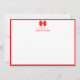 Trendy Neon Red Elegant Bow, Border and Custom Name Wedding Stationery Note Card