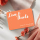 Trendy Script Coral Orange Love & Thanks Wedding Tack Kort