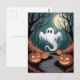 Trendy spooky Halloween Pumpkin Ghost Moon forest Postcard