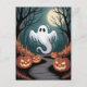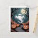 Trendy spooky Halloween Pumpkin Ghost Moon forest Vykort
