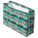 Chic 4 photo happy birthday gift bag for a trendy girl's birthday gifts. Celebrate your child's birthday with four beautiful photographs of them on this add your own photograph present bags with turquoise squares. Add their name and age under Happy Birthday.