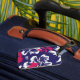 Trendy Tropical Blue Red Floral Pattern Monogram Bagagebricka