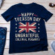 Den här "Lycklig Tförnuftsdagen" T-tröjan är ett humoristiskt och provocerande tag på Independence day, perfekt för dem som njuter av lite fräckt humor med sin patriotism. Utformningen har en plågad Union Jack flagga i mitten, försedd med den feta texten "LYCKLIG TREASON DAY" ovan och "UNGRATEFUL COLONIAL PEASANTS" nedan. Vintagen stil i texten och det vacklande utseendet på flagga i ge gör att skjortan känns nostalgiskt och svårt, vilket ökar dess charm. Det som gör denna T-shirt speciell är dess kloka och oåterkalleliga sätt att fira den 4 juli. Genom att hänvisa till det historiska sammanhanget med Förenta staternas självständighet från det brittiska styret förlöjligar det brittiska perspektivet på helgdag, skapar det en unik konversationsstart. Den olyckliga utformningen lägger till en lagrar av vintagens attraktionskraft och skapar både snyggt och roligt. Idealiskt för Independence day firande, grillytor och sammankomster är denna T-shirt ett underbart sätt att visa er känsla av humor och patriotisk anda. Den unika designen ser till att du kommer ut i vilken folkmassa som helst och skapar den som ett minnesvärt tillägg till din helgdag. Bära den här "Lycklig Tason Day" T-shirt för att fira den 4 juli med en aning satir och stil.