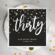 Moderna napkins i 30års födelsedag med en svart snyggt, guld konetti, titeln "trettio" i ett fet, vitt skript, orden "grattis på födelsedagen", deras namn och firande.