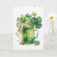 Irländsk grön öl i masonburk med akvarell treklöver bukett och fjäril för St. Patrick's Day
