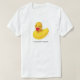 en flickautslagsplats med ett rubber ducky för det normala på bekläda och ett ont rubber ducky på baksidaen. beklädanågot att säga "kan räknar jag se oskyldig" och de tillbaka något att säga "men inte på den.",