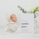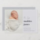 Det moderna minimikortet för födelseanmälan i neutralter med coola har ett lodrät- eller porträtt-orienterat foto som är anpassat vid högerna till "Hi, I'm [Namn]" bredvid. Anpassa med baby födelsedatum, status och en familj namnteckning och lägg till ytterligare tre fyrkantiga foton på baksidan.