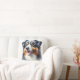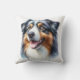 porträtt i en hund i lycklig Australian shepherd med ögon och färgad i päls svart, vit och brun.