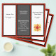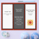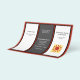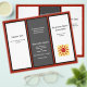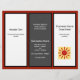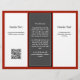 Affärsflygarbroschyr i svart, röd och vit med sex textpaneler på båda sidor om 8,5 x 11 tum papper. Sida ett har två vita paneler med mörk grått i mitten. Bakgrunden är röd mörk. Den här sidan är broschyrens utsida när den viks. Lägg till en logotyp på framsidan med hjälp av mallen. På sidan två finns texten för insidan, tillsammans med en ställe för en QR-kod. Mittpunkten är för ett "ungefär"-avsnitt.