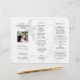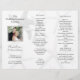 Svart och vitt, bröllopsprogram på stranden med fotomall. Lägg detta papper i tredjedelar, i stil efter köpet. Lägg till en bild av paret på framsidan. Vit papper med svart text, malltext och en helt ny stjärnfiskdesign - som kan tas bort.