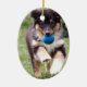 Tri kulör australian shepherdvalp julgransprydnad keramik