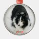 Ändring ut bilden av denna förtjusande tri-färg Sheltie eller datera eller båda med lätta mallfält. Skapa en prydnad som ska vänner kommer med ut varje år.