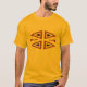Den här skjortan har en enkel, sofistikerad geometrisk mönster av upprepade bruna och svarta trianglar.
