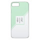 Mint grönt och vit geometrisk iPhone 8/7 Fodral med monogram. På framsidan finns två diagonala rand, en mynta och en vit som skiljer kortet åt i två trianglar. En vit kvadrat är på mitten med ditt monogram.
