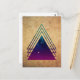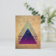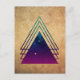 En sci-fi-illustration av coola med en grym bakgrund. Bakgrunden är en åldras grungy antik brun färg. Bilden består av en stor triangel fylld med blå och lila rymden och struktur. Denna triangel omges av flera lilorna triangelkonturer av blåaktig karaktär som går uppåt.