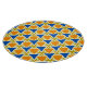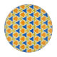 Blåa och orange trianglar och gyllene stjärnor på blekens gult, abstraktens geometriska mönster.