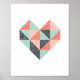 Den här moderna väggkonsten skulle se underbar ut på sin egen eller som en del av en gallerimur. Den här designen har en hjärtform som består av trianglar i mynta grönt, rosa och svart mönster.