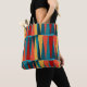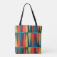 This tote has a mid-century modern design of triangles upside down and right side up, repeating across the design. If you like different colors, message me